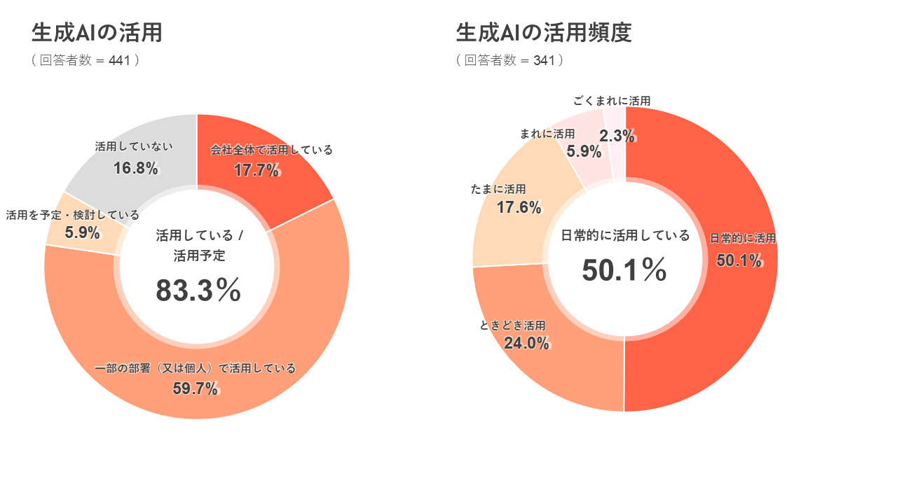 また、生成AIを「日常的に活用している」と回答した方が50.1%と半数を超えました。