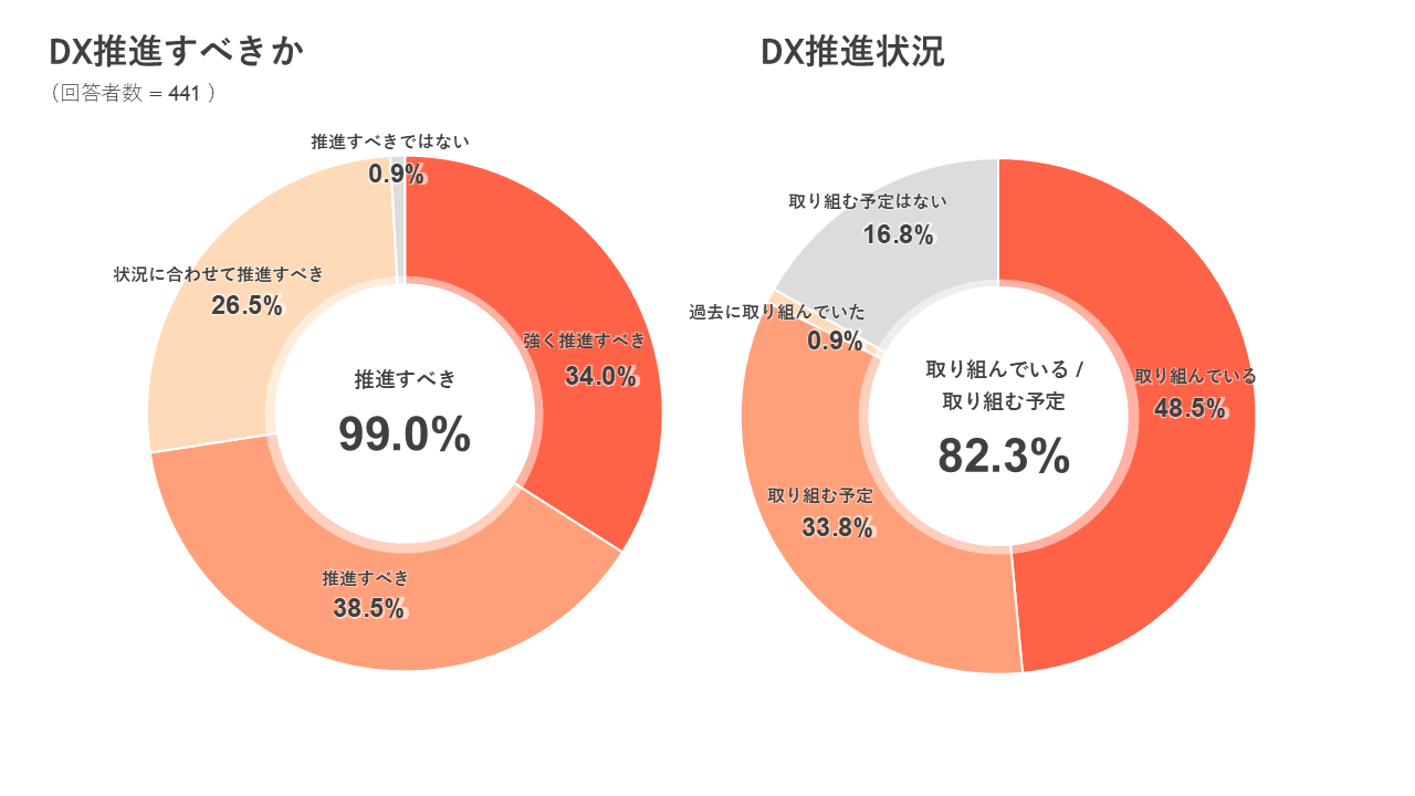 また、「貴社はDXに取り組まれていますか?」という質問に対し、82.3%が「実際に取り組んでいる・取り組む予定」と回答しました。