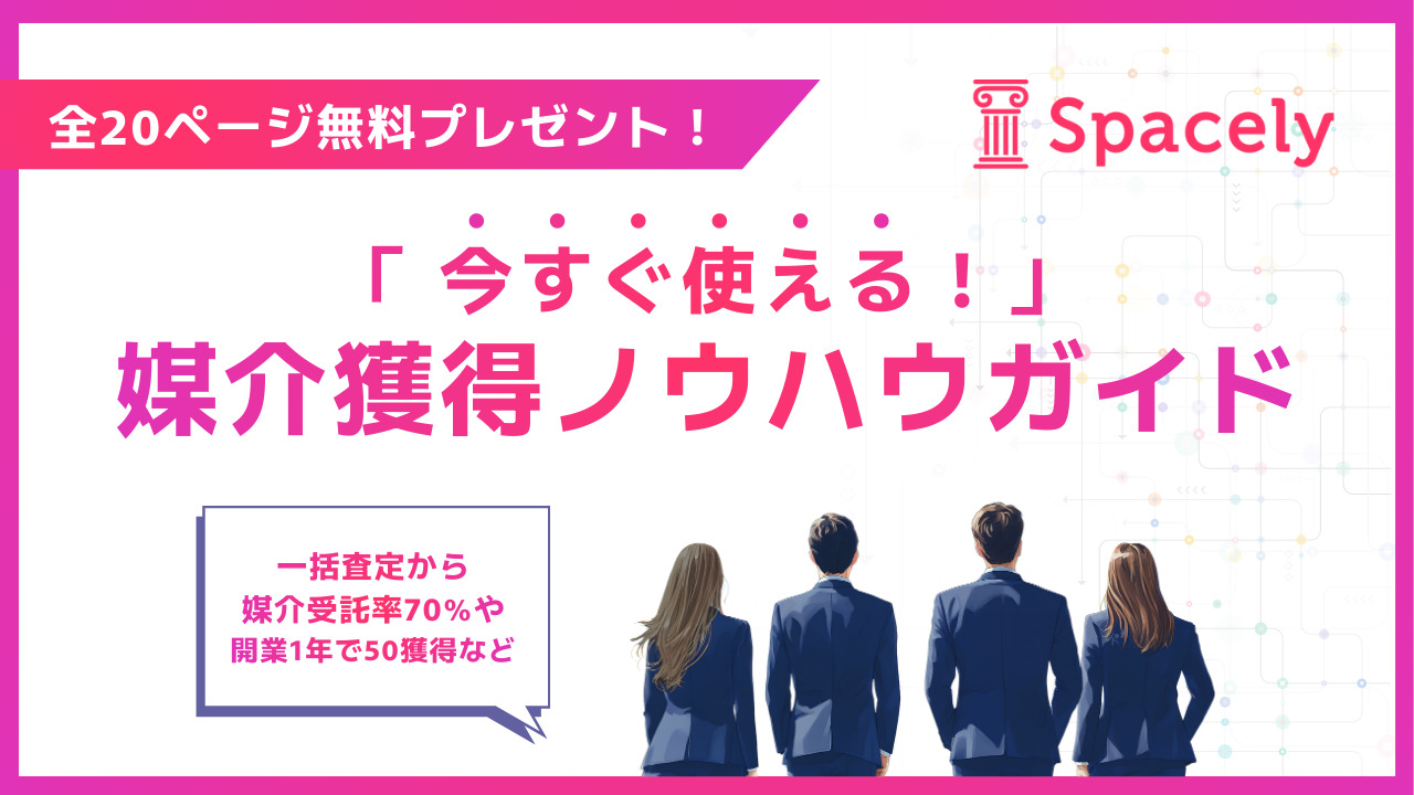 【全20ページ】2025年不動産事業者420名様に「専任媒介・媒介獲得」についてアンケートを行い、その成功ノウハウをまとめたガイドを作成いたしました。一括査定サービスからの反響攻略方法や専任媒介を獲得できるヒケツなどもご紹介しております。ぜひお役立てください!